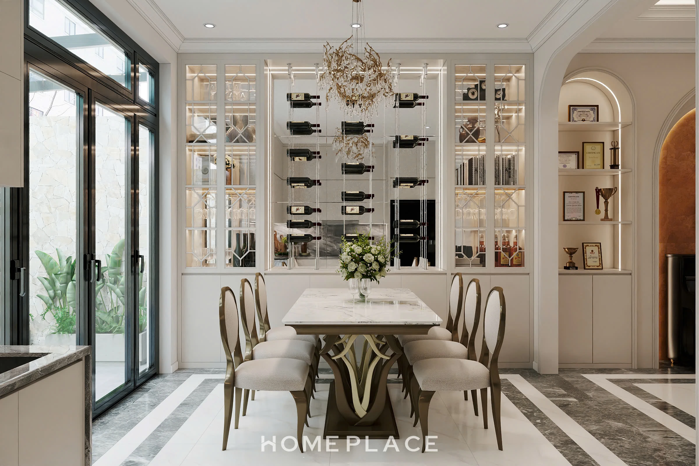 Home Place thiết kế phòng ăn theo gam màu sáng sang trọng, hiện đại