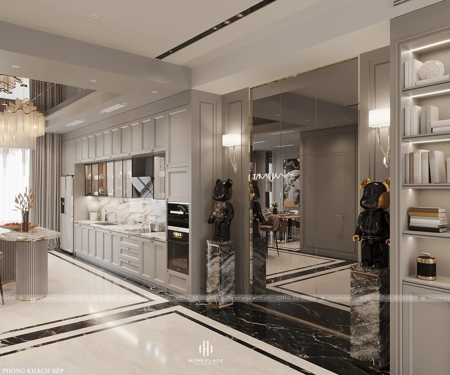 Phòng khách bếp được Home Place bố trí nội thất phù hợp, sang trọng hiện đại